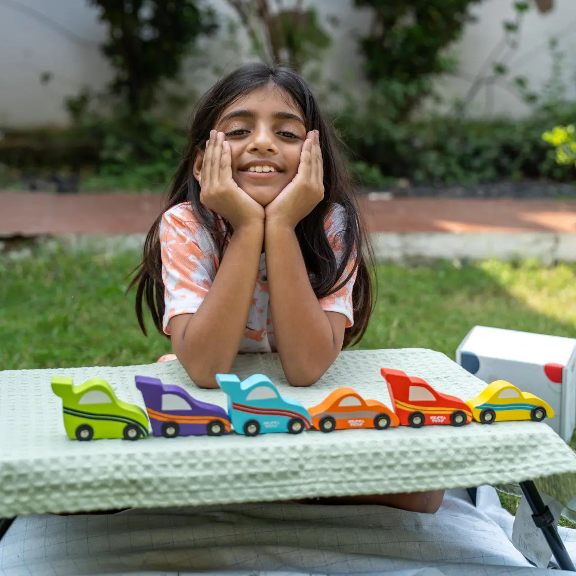 Wooden Car (3 Pcs) - Green, Orange, Purple